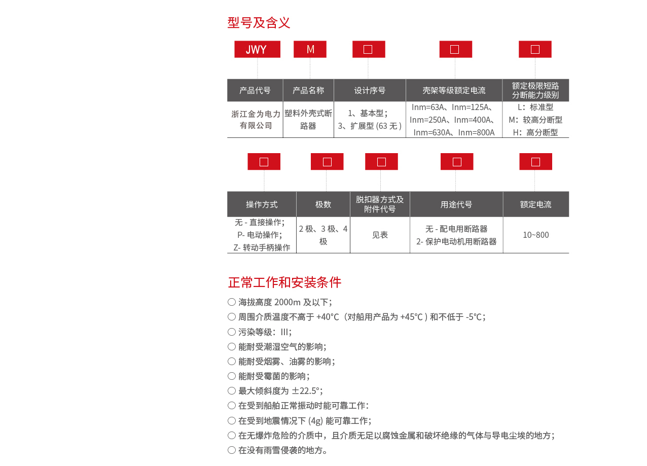 断路器按照其额定极限短路分断能力(lcu)的高低,分为L型(标准型)、M型(较高分断型)、H型(高分断型)三类。该断路器具有体积小、分断高、飞弧短(部分规格零飞弧)、抗振动等特点,是陆地及船舶使用的理想产品。