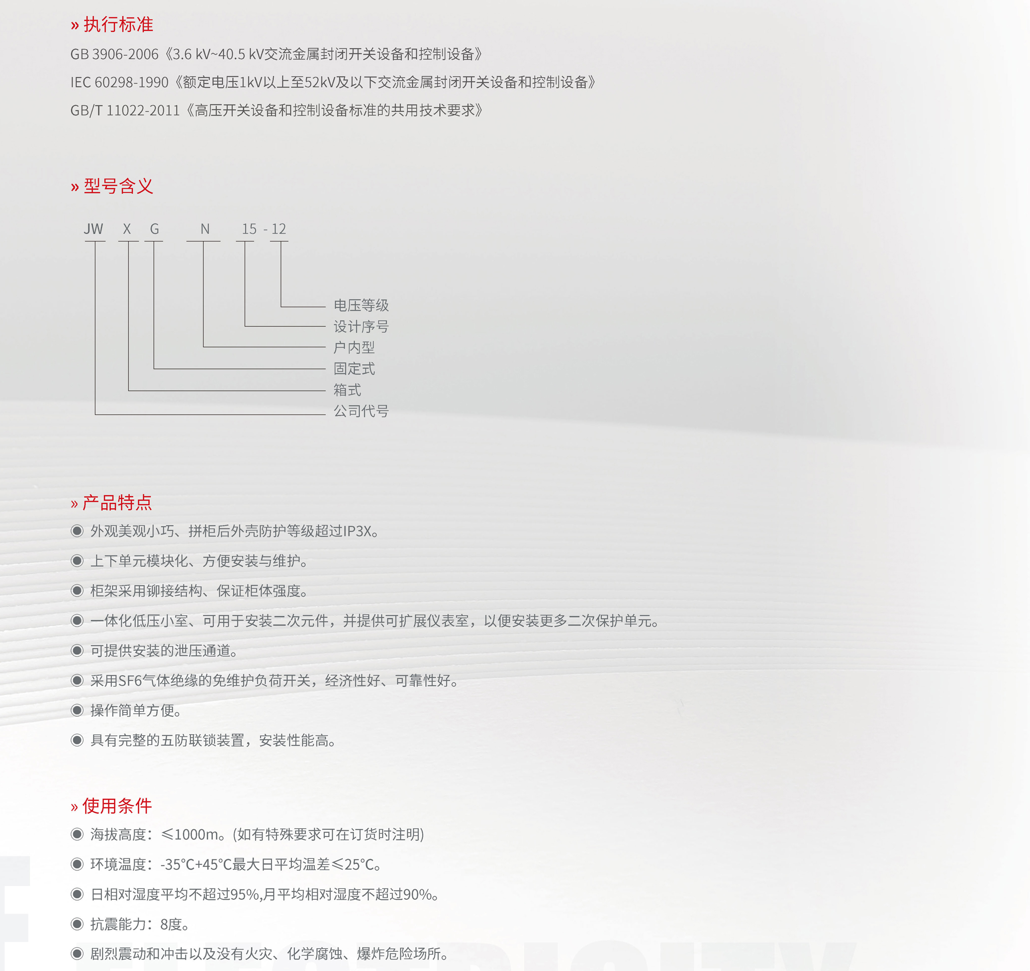 交流金属封闭环网开关设备适用于交流50Hz, 12kV的电力系统。广泛用于工业及民用电缆环网及供电终端。特别适用于以下场所 :小型二次变电站、开闭所、城市居民区配电、工矿企业、商场、机场、地铁、风力发电、医院、体育场、铁路等。
