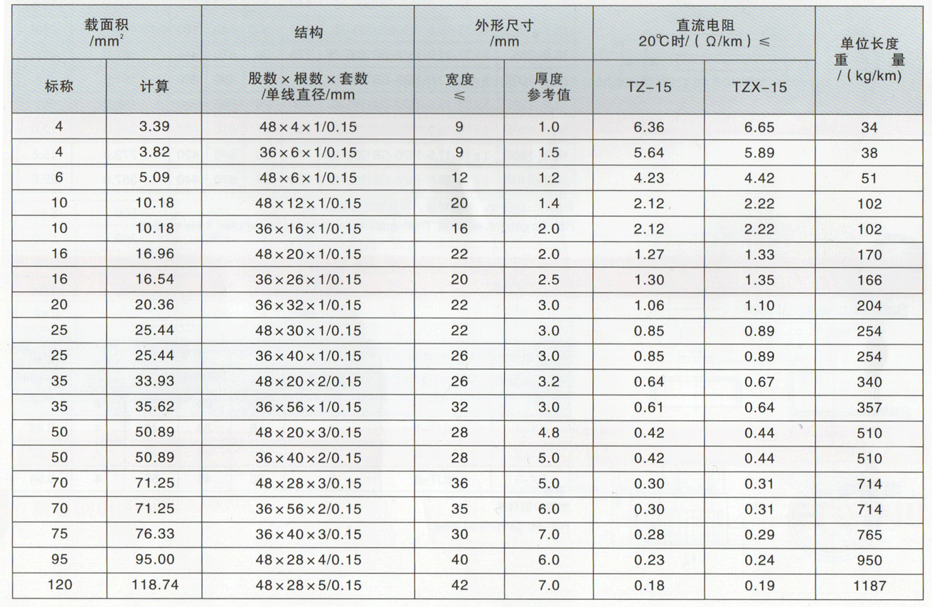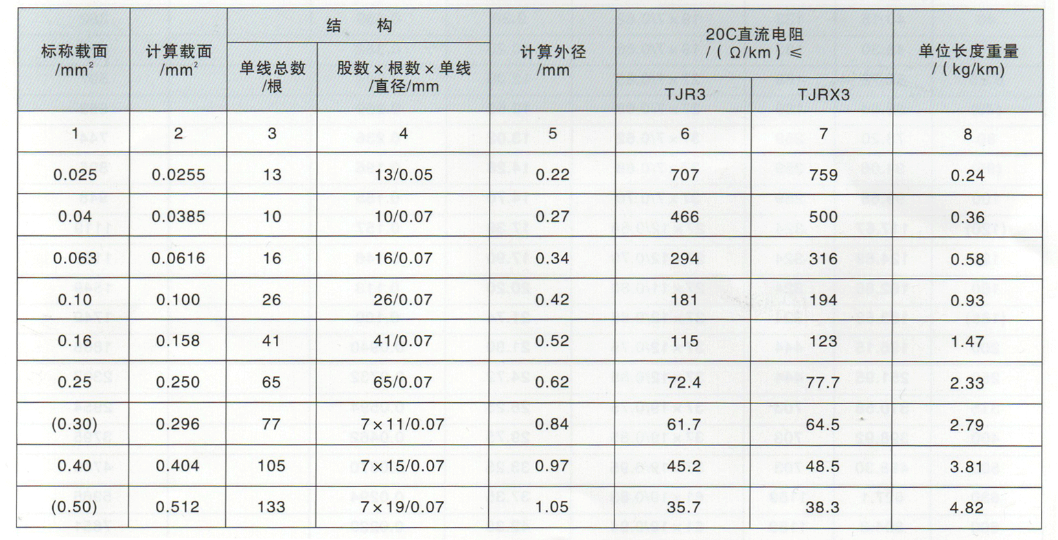 TJR3, TJRX3 soft copper stranded structure and technical parameters
